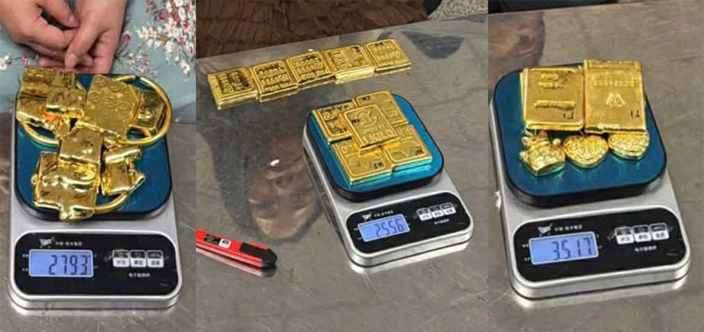 Kết quả kiểm tra cho thấy các hành khách này cất giấu tổng cộng 31 miếng kim loại màu vàng trong đồ lót và trên người. Tổng trọng lượng tang vật khoảng 12,3kg, nghi là vàng miếng.