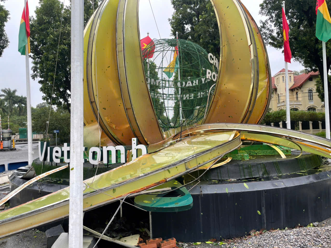 Biểu tượng tại bùng binh trước cổng trụ sở Bộ Ngoại giao bị hư hại do bão
