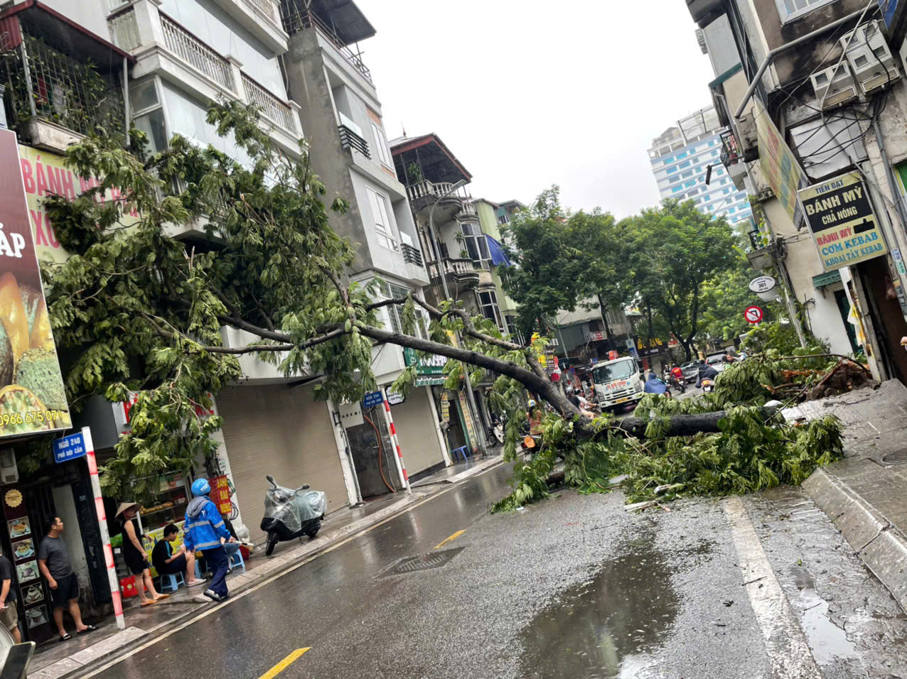 Cây đổ vào nhà dân trên phố Đội Cấn (quận Ba Đình, Hà Nội)
